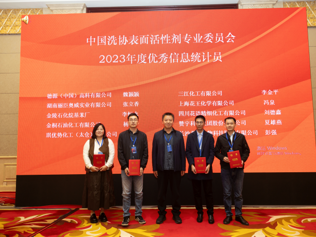 會(huì)議期間,表委會(huì)對在2023年度信息統(tǒng)計(jì)工作中表現(xiàn)優(yōu)異的統(tǒng)計(jì)員進(jìn)行了表彰和獎(jiǎng)勵(lì)。第九屆中國洗協(xié)表委會(huì)副主任委員王旭宣讀《中國洗協(xié)表面活性劑專業(yè)委員會(huì)關(guān)于對2023年度優(yōu)秀統(tǒng)計(jì)員進(jìn)行表彰的決定》。